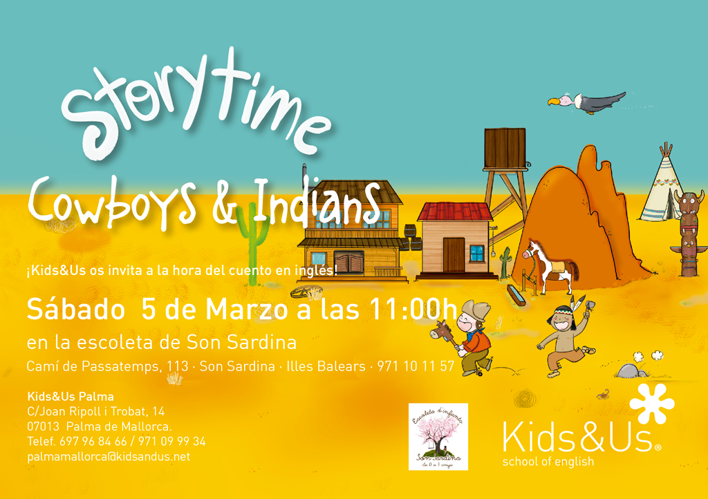 Hoy estamos muy contentos de deciros que el próximo sábado 5 de marzo a las 11h nuestra Storytime Cowboys & Indians llega a la escoleta de Son Sardina.